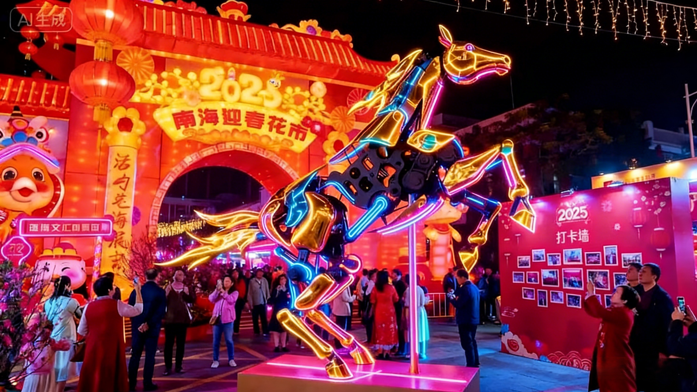 赛博机械马亮相2025佛山南海迎春花市。资料